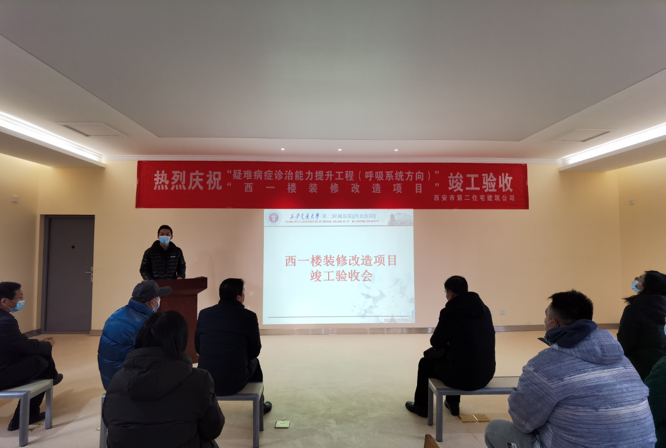 2月2日上午,西安交通大學(xué)第二附屬醫(yī)院后勤保障部負(fù)責(zé)人代表院方將一面“施工技術(shù)精湛,科學(xué)高效管理”的錦旗送到我公司,以感謝我公司提前保質(zhì)保量完成交大二附院西一樓裝修改造項(xiàng)目。