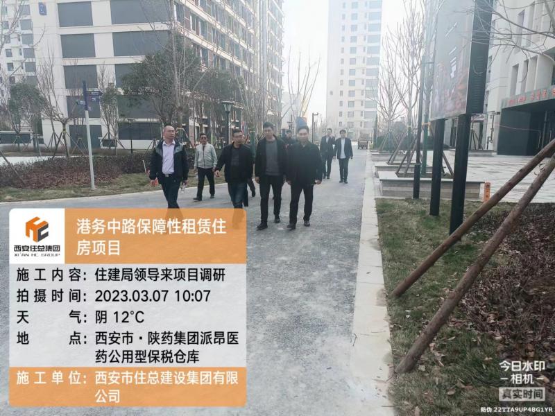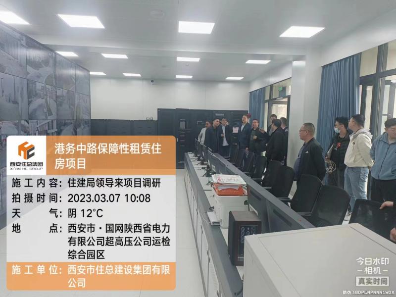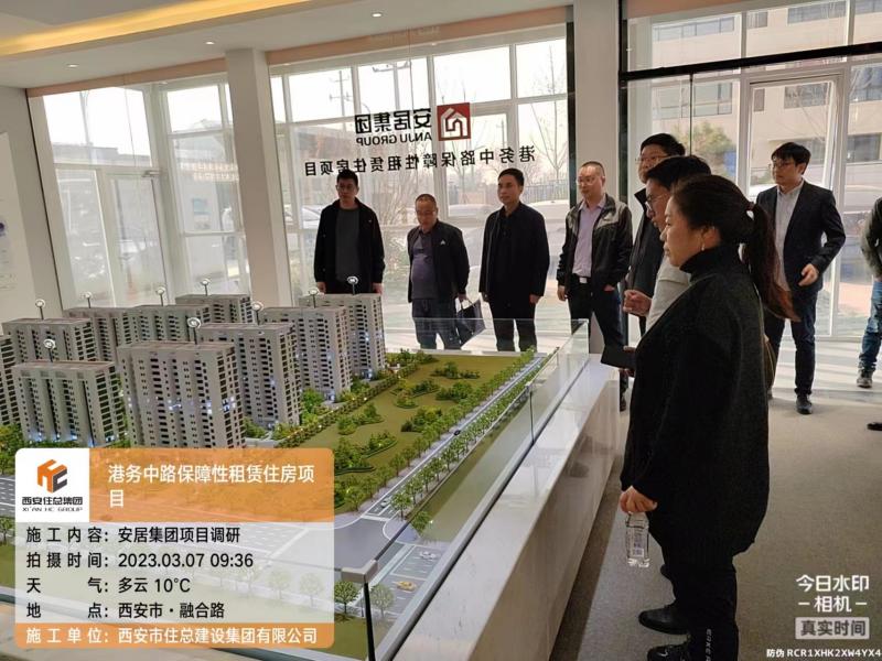 3月7日,市住建局領導一行對港務中路項目進行調研,安居集團和住總集團領導陪同調研,首先領導們來到項目部沙盤室觀看沙盤及項目建設過程視頻,詳細了解了項目建設情況、新工藝技術應用及“平疫結合”轉換模式應用。