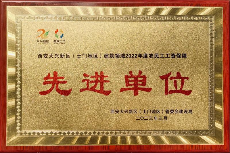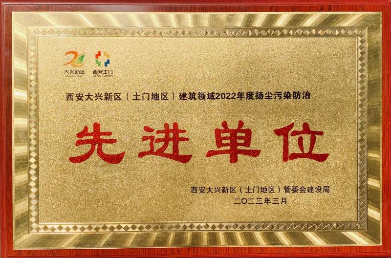 西安市住總建設(shè)集團(tuán)有限公司黃金嘉境項(xiàng)目部被評(píng)為“大興新區(qū)(土門地區(qū))建筑領(lǐng)域2022年度揚(yáng)塵污染防治先進(jìn)單位” “大興新區(qū)(土門地區(qū))建筑領(lǐng)域2022年度農(nóng)民工工資保障先進(jìn)單位”
