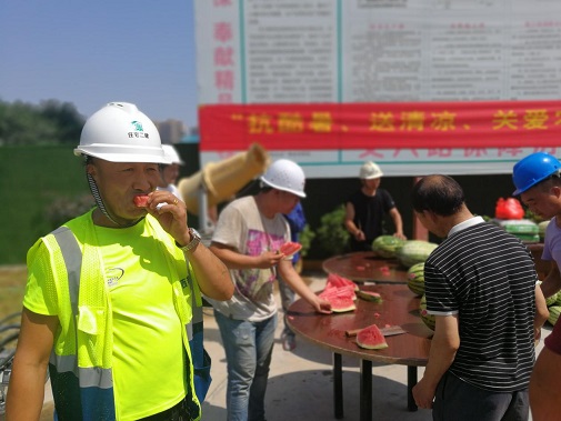 同時為進一步推進保障房項目文明施工管理,7月26日上午,公司黨委、工會、安委會再次對丈八路保障房項目開展“送清涼·享關愛”防暑降溫慰問活動。將西瓜、綠豆、白糖等防暑降溫用品送達施工一線的工人手中,并叮囑大家一定要嚴格執行高溫措施,注意勞逸結合和防暑降溫,切勿麻痹大意造成傷害。長期身處一線職工對公司黨委、工會和安委會的關愛行動表示感謝。